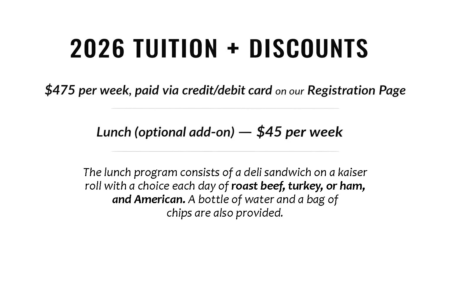 See our schedule, tuition and discounts below!