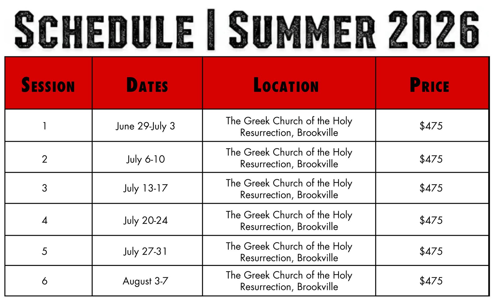 Camp will be held at the air-conditioned gymnasium at The Greek Orthodox Church of the Holy Resurrection in Brookville.
